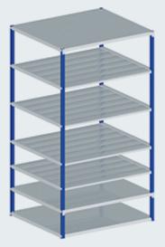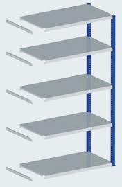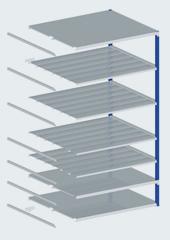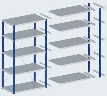 The Normafix shelf row always begins with a basic field. Additional fields can be added to the left or right as needed. Cross bracing is required in every 7th field.