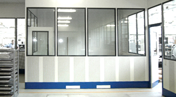 Partitioning of a production area all the way up to the ceiling with over-dimensioned, fast- action rolling doors. Wall height 7 m.