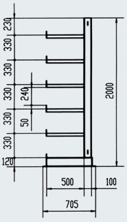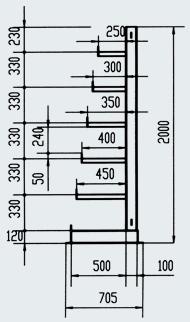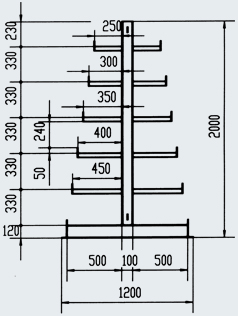 Side view alternative design, cantilever arm length tapers toward the top or the upright