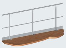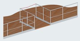 Every staircase consists of 2 C-shape steel sides with hand and knee rail. Stair step are alternately either plywood or galvanized steel grating.